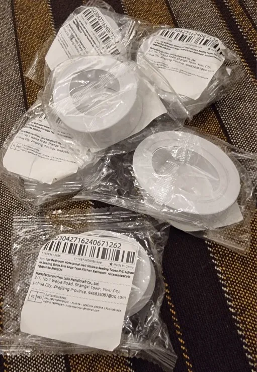 6 small rolls of white waterproof tape, they are fine, but they are too thin and you have to be very careful when putting them on, because they tend to break at the center line when folding them and making the angle.